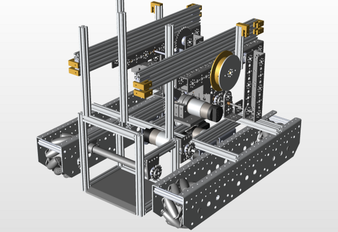 3 iterations were made on the tilter. The first one ran on one worm gear gearbox. This gearbox bent. We then changed it to a tilter with sprockets and chains instead. The last iteration was to replace the axle with a hex shaft. This was in response to the set screws digging and eating the axel. This produced a lot of play. The tilter was very simple. It only had one point of rotation and the extension gearbox for the extension slides were direct driven by the core hex motor. The tilter was a difficult mechanism to design. This is why we have 10 iterations in the CAD. This helped us conceptualize what worked and what didn’t. Because our tilter was not strong enough to hold itself in midair, we needed to add an internal bumper to hold the tilter up while depositing. This was very innovative because it folded neatly into our robot, and unfolded when the robot deployed.