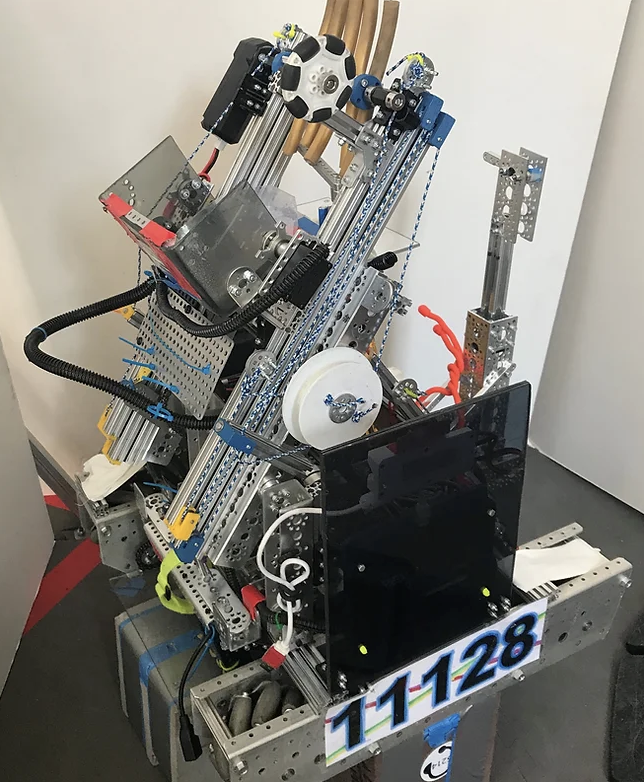 2019's robot, Blue Boi, was built to compete in FIRST's challenge: ROVER RUCKUS presented by Qualcomm. Our robot was able to pick up minerals (2'' - 3'' plastic cubes and balls) and place them into the lander specified slots (center scoring element). It was also able to pull itself up onto the lander.