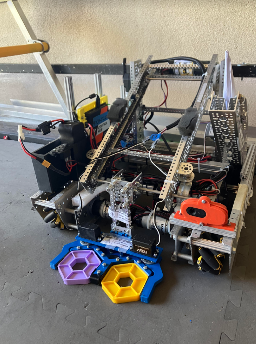 Our outake’s spool kept getting tangled and the servo wasn’t strong enough to bring the slides up, so we had the intake take and deposit pixels to the backzone.