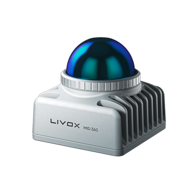 MID-360: A compact sensor that uses rotating laser beams to create a full 360-degree 3D map of its surroundings by measuring distances to objects in all directions.