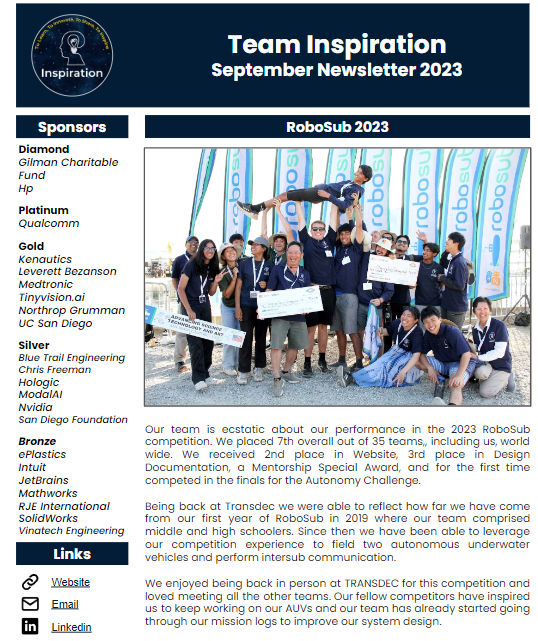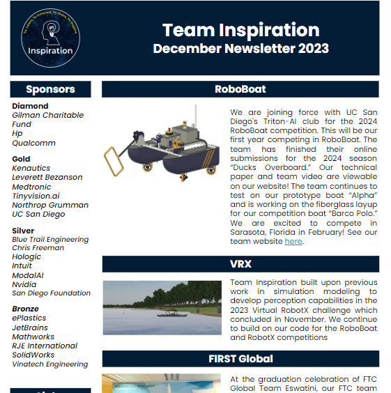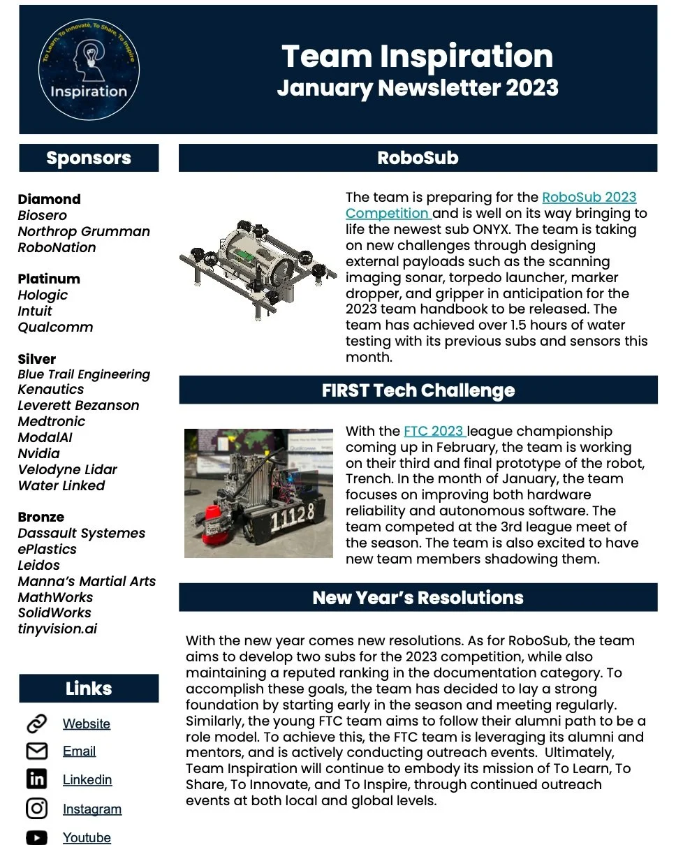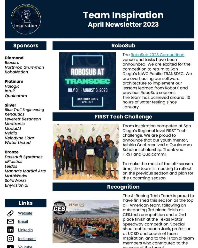 Team Newsletter As of 2023, the team will be posting newsletters that incorporate exciting updates, upcoming events, team highlights, and much more. Sign up with your email address to receive news and updates! Email Address Sign Up Thank you! January 2023 Newsletter July 2023 Newsletter December 2023 Newsletter December 2024 Newsletter April 2023 Newsletter September 2023 Newsletter September 2024 Newsletter April 2025 Newsletter